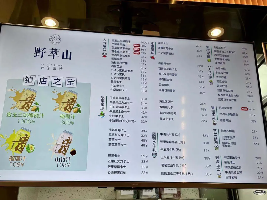 野萃山,是一個專門做水果飲品的品牌,在深圳有不少商場店。
