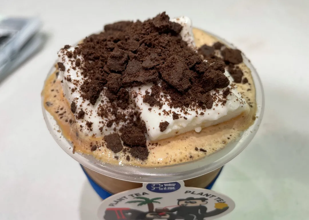 在深圳,乃青乃綠出了一款椰乳咖啡冰磚,在椰乳咖啡上放置切成塊的光明奶磚,撒上奧利奧粉,增加產品新意。