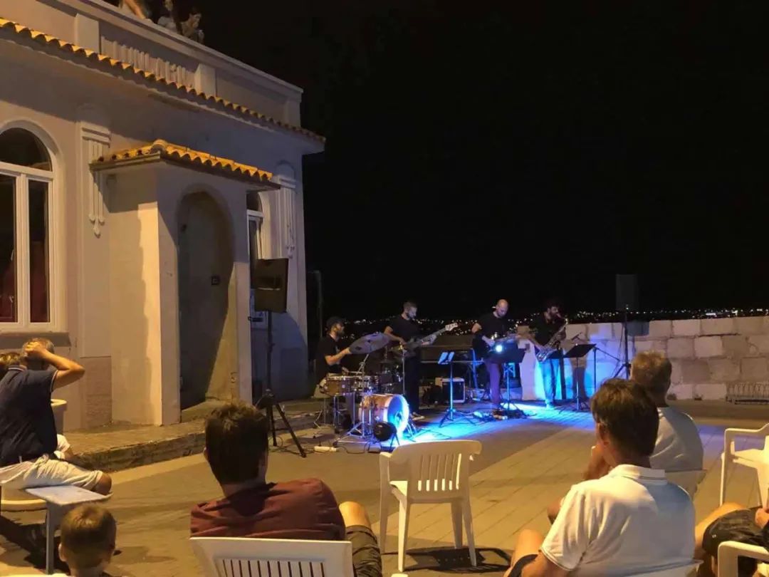 夜晚有爵士樂隊在小廣場演出