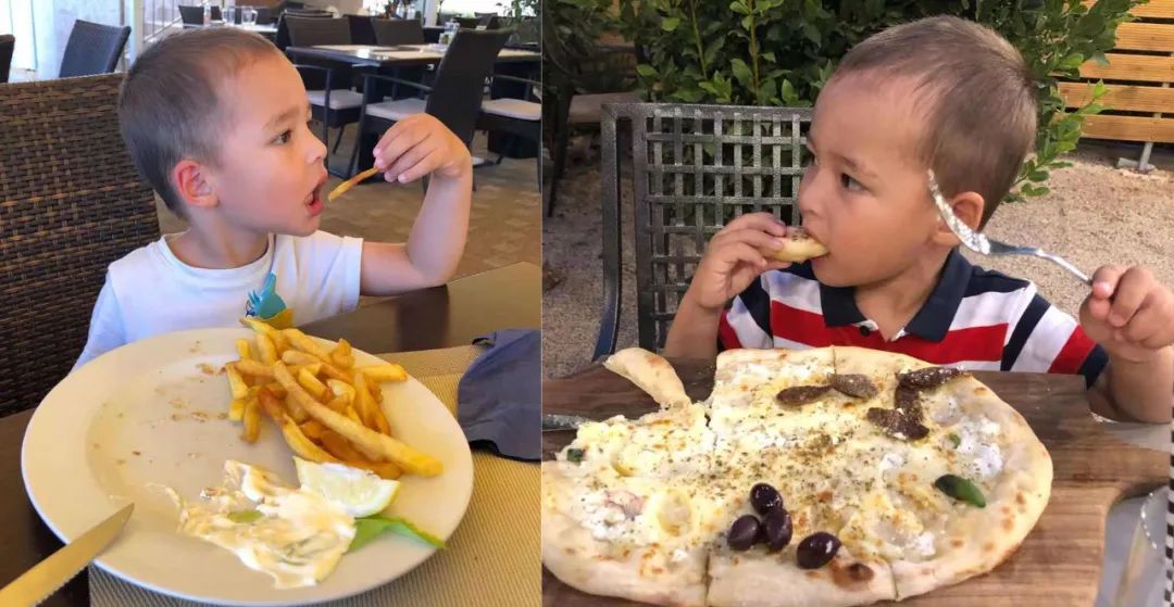 難得吃上了薯條和披薩的小木馬