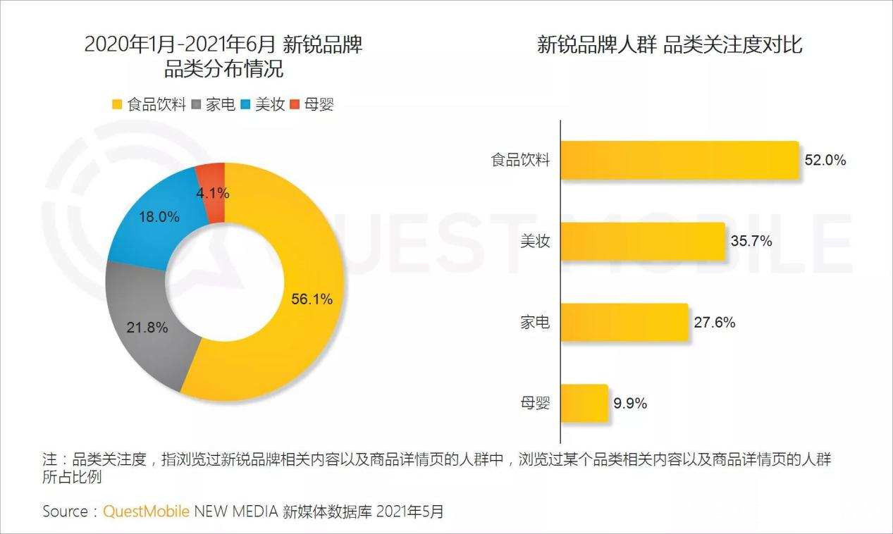 通過簽約信息不難看出,若羽臣在美妝和食品賽道上有了進一步突破。QuestMobile公佈的《新鋭品牌人羣洞察報告》顯示,目前,消費行業正在快速崛起一批新鋭品牌,其中食品飲料賽道和美妝品牌最受消費者關注。