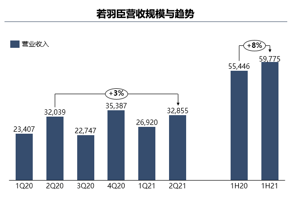 8月26日晚間,電子商務綜合服務提供商若羽臣(003010.SZ)公佈2021年中業績報。上半年,公司實現營業收入5.98億元,同比穩定增長7.81%,第二季度營收環比增長22.3%;上半年實現利潤總額4788.35萬元,淨利潤3965.35萬元,剔除自有品牌部分,公司報告期淨利潤同比增長22%。