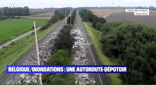 7月中旬時,比利時發生了致命的洪水,共造成38人死亡,不少於3萬名居民受到影響。而15.5萬噸的垃圾則繼續在離列日(Liège)約10公里的A601高速公路上堆積,並徹底切斷了道路。