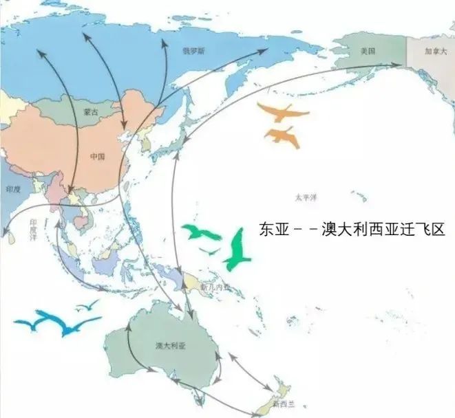 東亞-澳大利西候鳥遷飛示意圖