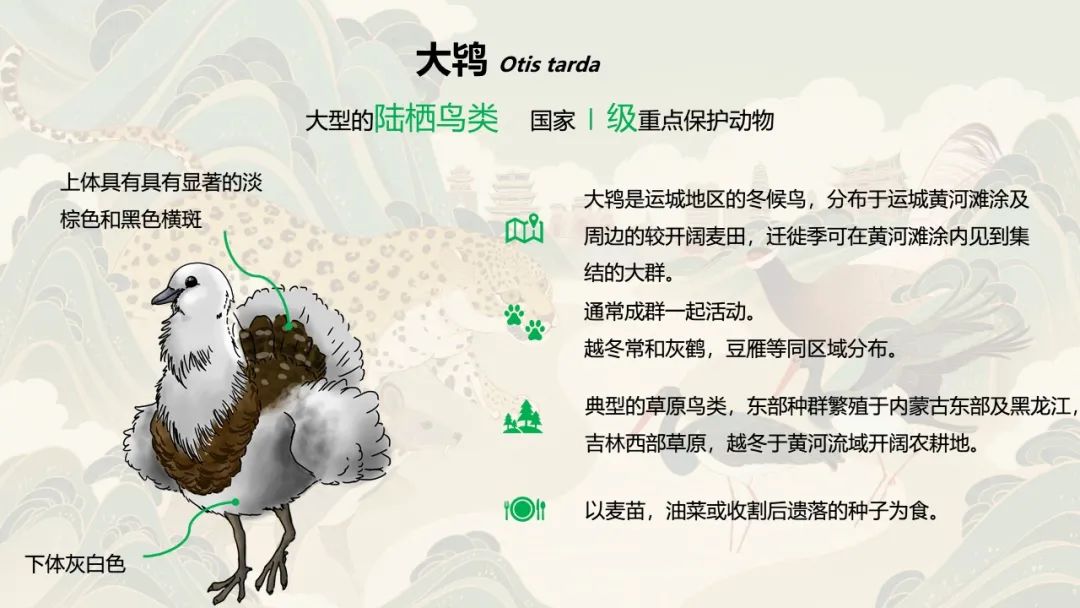 大鴇是高度依賴農田生態系統的一種動物,它通常整個冬季都在農田覓食。