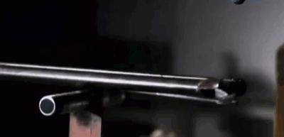 結果人造手直接被吹飛,那根塞入槍管的手指炸也沒了。這個測試的結果非常喜聞樂見,動圖中大家可以看到,似乎槍管裂了。然而往下跳的那根金屬條其實只是這支雙管獵槍兩根槍管之間的連接焊條而已,但槍管膛口確實被瞬時過大的膛壓炸裂了口子,這在一定程度上説明了槍管內的異物確實會導致局部壓力猛增而導致炸管,但絕對不會導致炸膛或傷及射手。