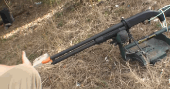 而且在槍彈方面,他們也選擇了比較兇悍的霰彈槍,結果直接看動圖: