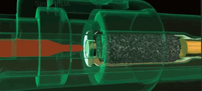 當然,這種從動畫作品裏面傳出來的梗當然不是真的,咱們先從槍械發射子彈的原理去談。當擊針擊打子彈尾部的底火,爆炸的底火點燃了彈殼內的發射藥,發射藥開始燃燒,而固態發射藥在燃燒時生成的氣體是本身體積的數百倍。膨脹的氣體將彈頭推離彈殼,沿着槍管前進。
