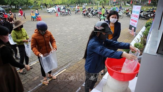 圖片説明:2021年8月中旬,越南廣義省善仁俱樂部安裝自動“取米機”,免費向受疫情影響的困難羣眾提供大米。/VNA