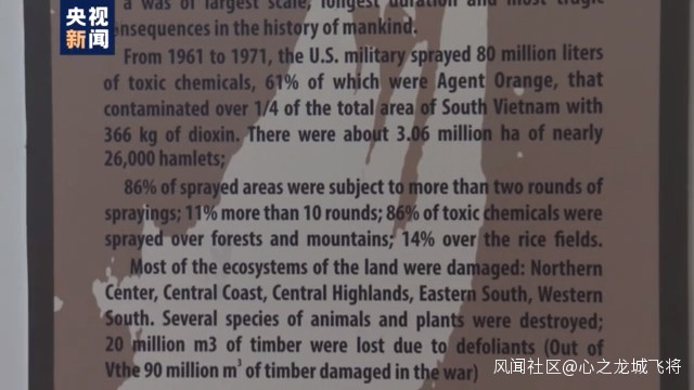 越南“橙劑”-二噁英受害者協會主席 阮文贏: 美國在戰爭中在越南使用“橙劑”,自1961年到1971年長達10年時間,對於生態環境以及越南人民的身體健康,都造成了嚴重的影響,美國使用了約8000萬升化學毒劑,其中61%是“橙劑” ,含有366千克的二噁英,二噁英也是科學家公認的劇毒物質,使得超過480萬越南人被影響,超過300萬的後代正承受苦難,數十萬兒童先天畸形或存在生理缺陷,有的一出生就是植物人,很多女性無法生育,很多人因為慢性病的折磨而死去。