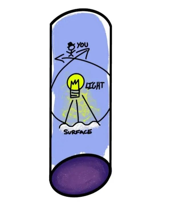 假設你將一束光瞄準非常遠的反射面。如果反射面的表面不平整,這束光將會被反射到多個方向。如果宇宙是甜甜圈形狀的,反射光線將會隨着宇宙的形狀逐漸彎曲,最終會繞回來並相交(如下圖所示)。這種情況只發生在宇宙有限的條件下。在無限的宇宙中,光線將會無限傳播下去。
