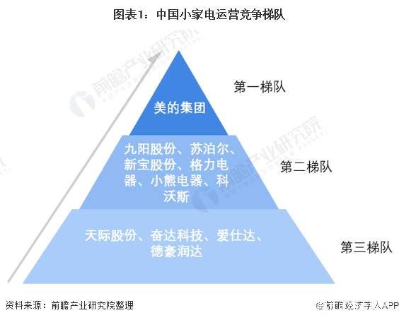 處於第一梯隊的一直是美的,40%的小家電業務佔據了線上線下行業前三的市場份額,其中線下份額佔比近50%。除此之外,九陽、蘇泊爾、新寶股份等形成了前有追兵、後有圍堵的競爭態勢。