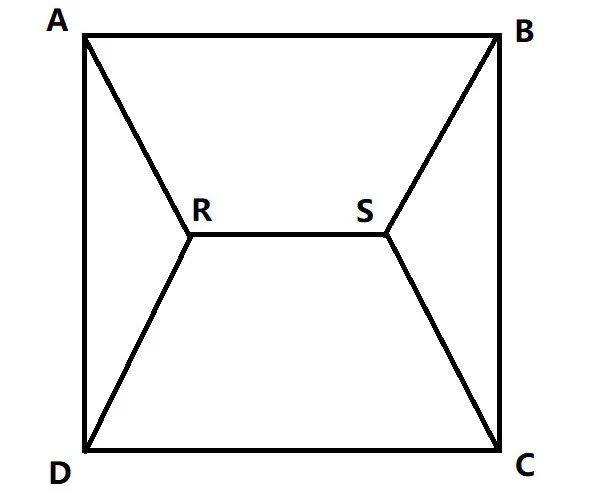 對於一個特殊的情況,四個城市在一個正方形的四角,相信很多小夥伴都會憑直覺認為驛站建在正中心是最優解。因為用三角形三邊關係我們知道,這個驛站的任何移動都會增加道路的總長度。