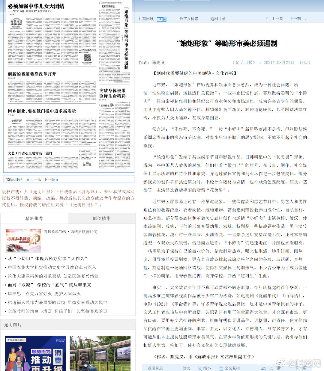 光明日報的此篇文章,這不應該是一個有着如此人才與資源的官媒説出的話。如此庸俗低俗的表達,真的是給文化人丟臉。光明日報如果用面首文化,面首現象説事,説不定還會迎來一陣掌聲。