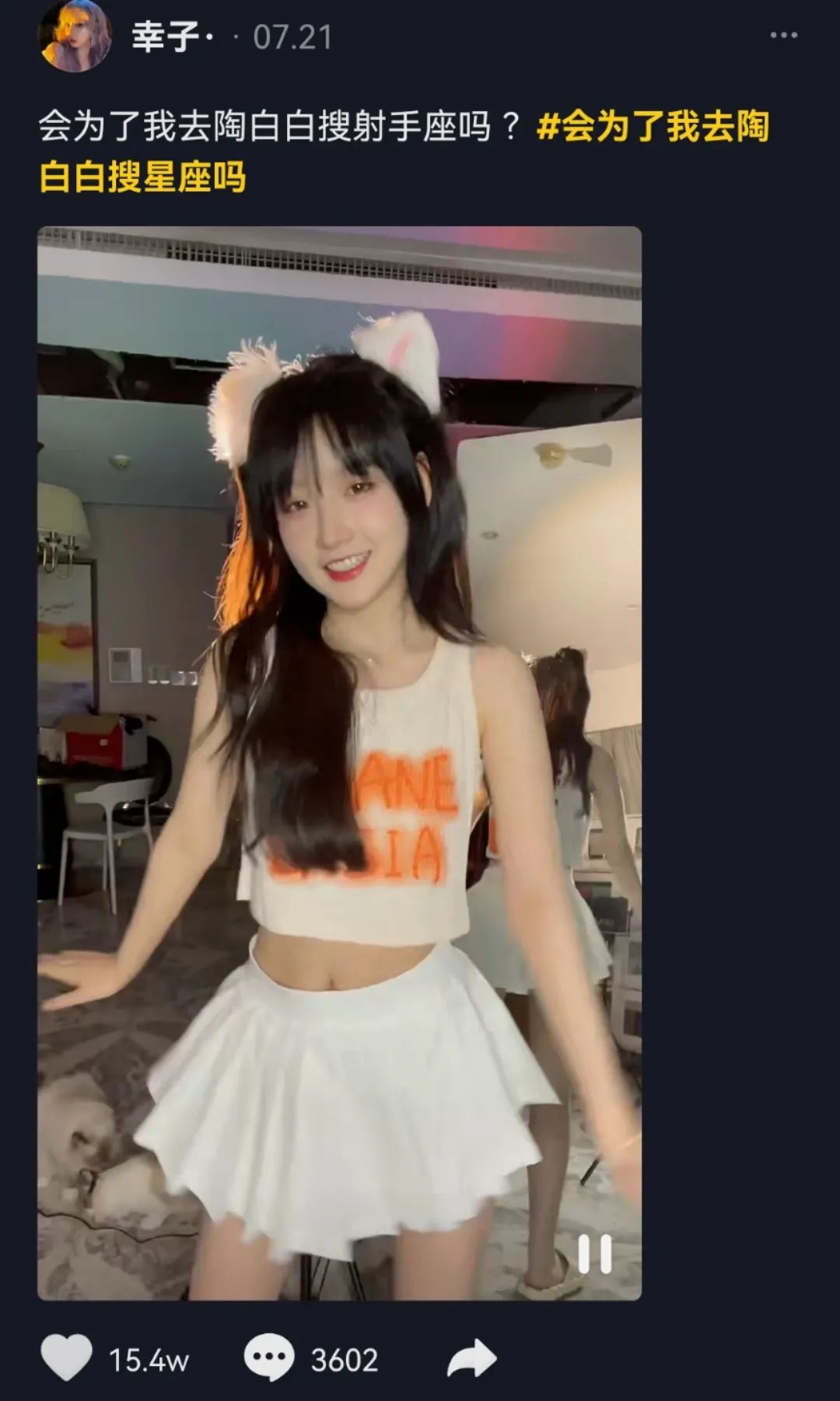無數帶#你會為了我去陶白白搜XX座#話題標籤的二創作品出現在抖音的平台上,“搜陶白白”一時成為帥哥靚女們大秀顏值的文案。