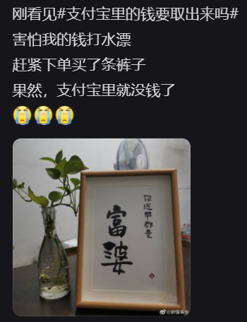 “ 快把支付寶裏的錢取出來,錢存在裏面不安全! ”