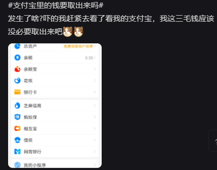 在這個話題下,就有的網友就嚇得立馬把支付寶裏的錢取了回去。