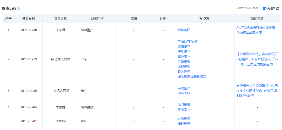 6月,國芯科技完成了來自創維集團的戰略融資,主營業務為人工智能芯片。據悉,創維集團本次投資國芯科技,是看中後者的人工智能芯片解決方案能夠幫助創維在車用、家用等場景下實現更好的物聯網產品落地,同時國芯科技的產品性價比高,有利於創維進行成本控制。