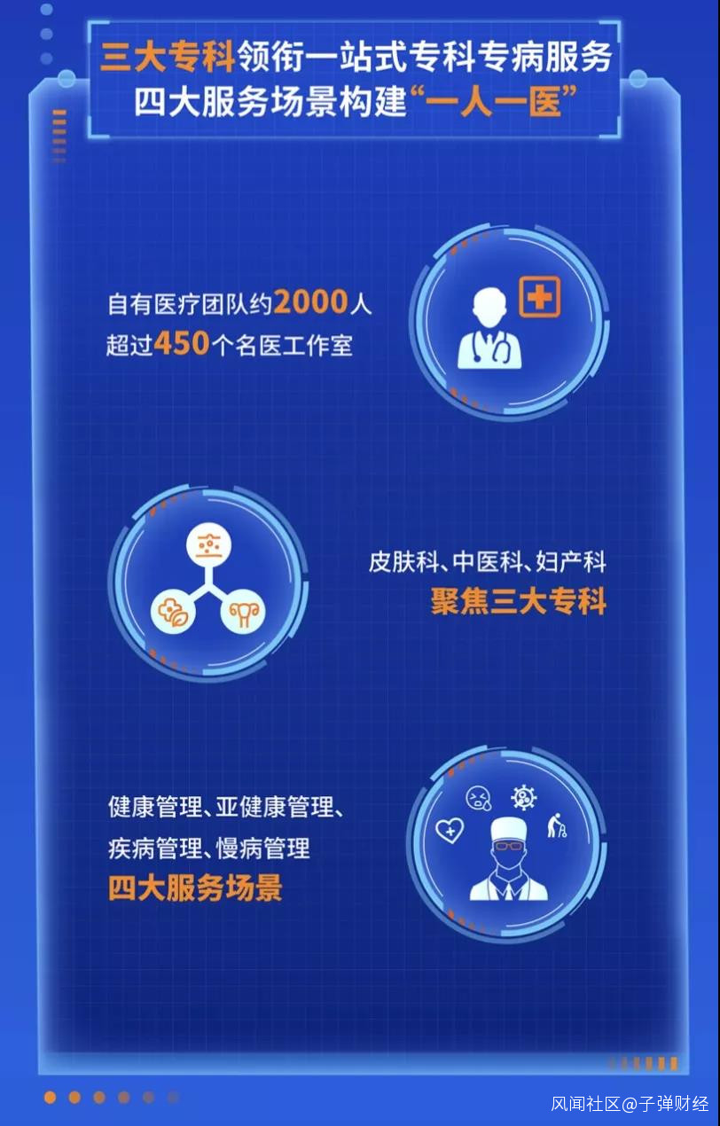 2021年上半年,平安健康專科運營初見成效,聚焦皮膚科、中醫科、婦產科三大專科,配置超過100名專科名醫,並同步往眼科、兒科、內科、外科等多方向孵化。藉助自有醫療團隊7*24小時全天候服務以及外部名醫大咖的權威指導,讓用户足不出户就可以體驗到問診、開方、用藥指導、報告解讀、隨訪關懷等各項服務。