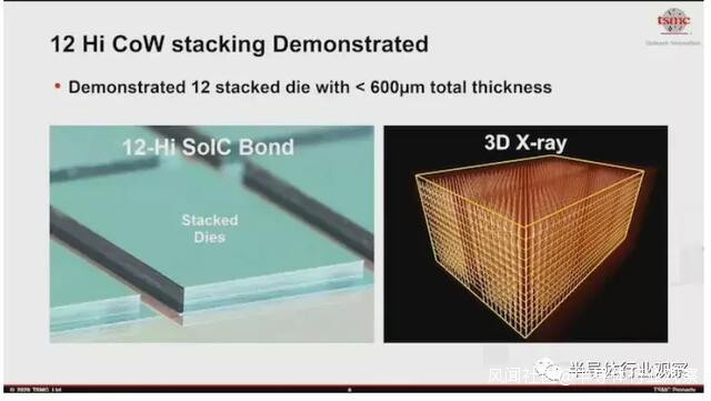 前道芯片堆疊技術,被統稱為“SoIC”,或集成芯片系統。這些技術的主要的特徵峯是不會使用後端集成用到的凸點技術,而是直接將硅片堆疊到一起。就好似是一整個硅片一樣。