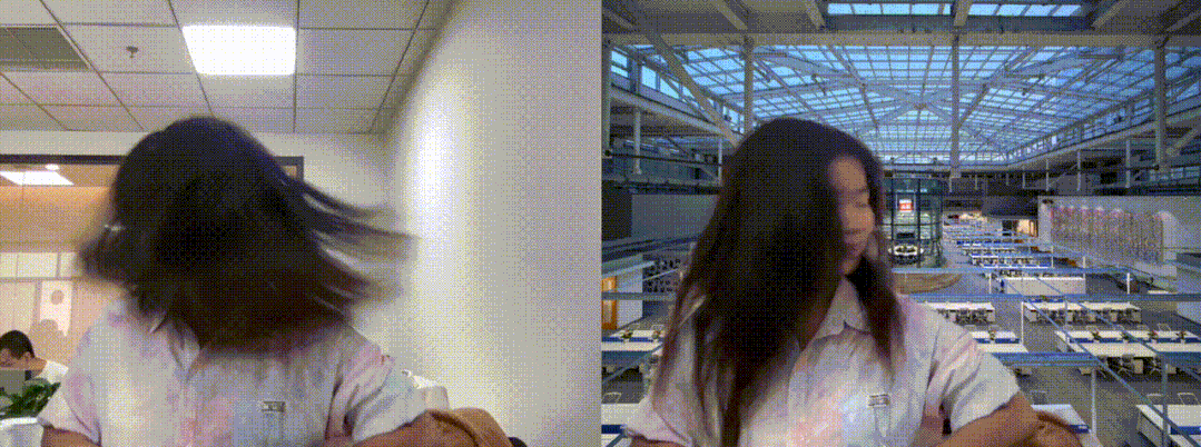 相比之下,現在在線會議軟件裏的摳圖,一旦頭髮遮住臉,人就會消失……