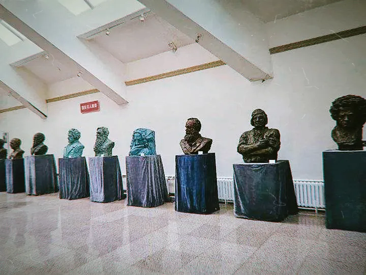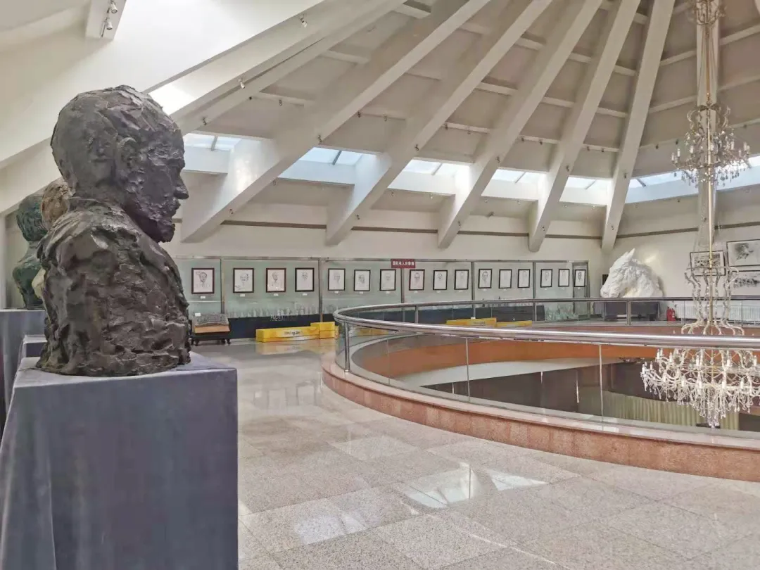 在譚老師的引領下,伴着有節奏的“噠噠”腳步聲,我們來到西廳的二樓,這裏是袁先生繪畫、雕塑、書法作品的一個全方位展示。