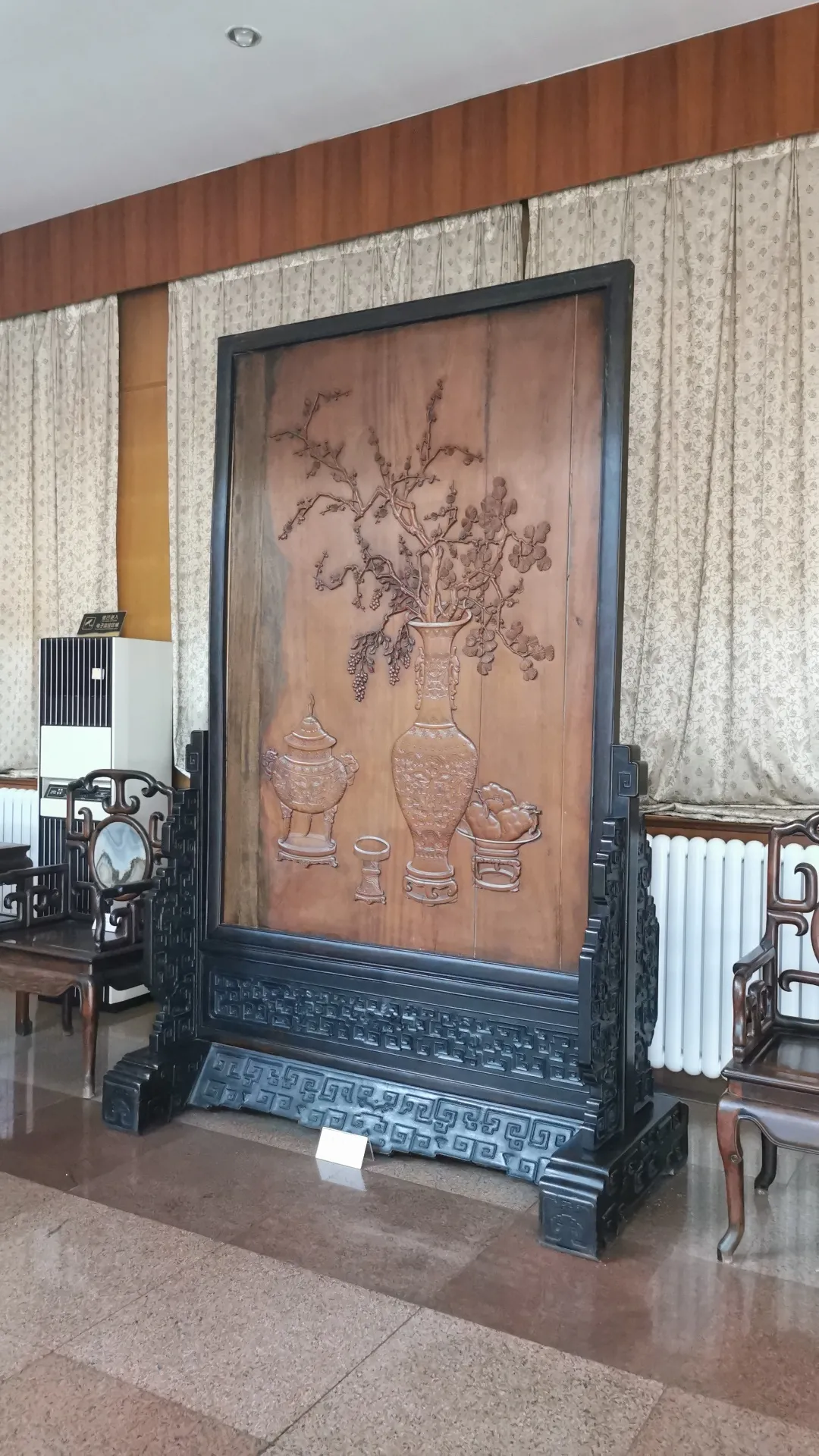 一層陳列着許多國家一二級文物,如新石器時代甘肅半山、西漢整套十二生肖陶俑、漢代綠釉陶器、唐代三彩駱駝、宋代暗刻菊瓣紋龍泉窯碗、明代紫檀大屏風、歷代近百位翰林的書法等,實屬不可多見的稀世珍寶。