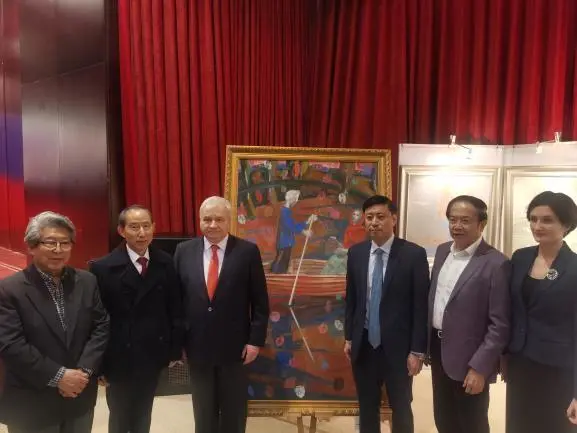 ▲俄羅斯藝術家畫展開幕式合影(右二為袁先生)