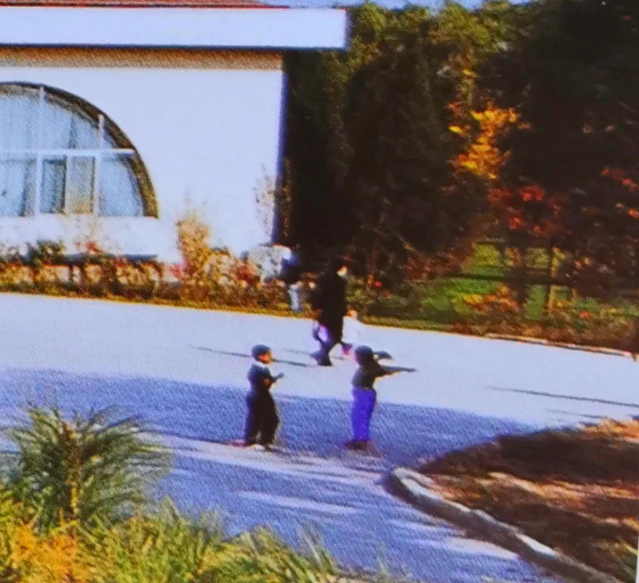 此時,巧遇一位外國友人,正在一尊雕塑前駐足觀賞,並對身邊的兩個孩子講述着什麼。兩個小頑童只有三四歲的樣子,仰頭望着父親,又望了望高高的雕像,然後圍着它奔跑起來,手中揮舞着剛剛收集的落葉,一派生機勃勃、祥和愜意的景象。