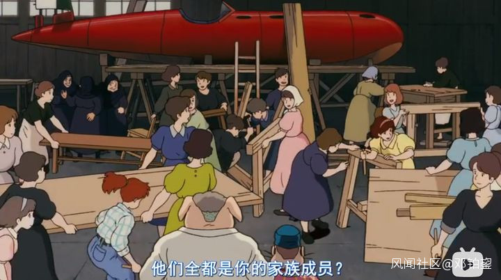 哥哥的工廠是老宮家的家族企業,就是《紅豬》裏那個工人都是女性的飛機工廠的原型。戰時,青壯年男性都上前線當炮灰了,工廠裏全是不熟練的家族婦女,而且表現遠不如《紅豬》工廠裏的女工完美。好在,宮崎家通過行賄打通環節,不合格的飛機零件都賣給了日本軍方造“零戰”了。戰後,宮崎家族趁亂漂沒了大量屬於國家的鋁材。在戰後暴發惡性通貨膨脹的時候,他們把這些鋁材加工成軟趴趴的次品勺子,賣給了恐慌積蓄化為烏有、盲目購物的市民。