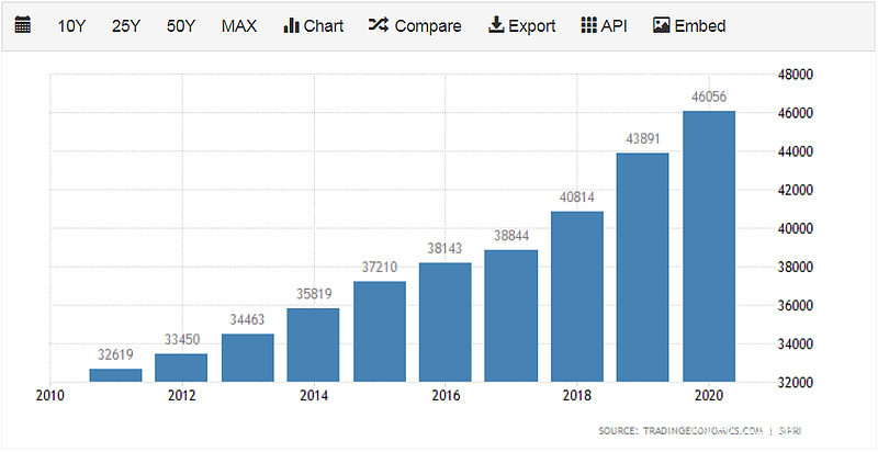 2019年時,韓國軍費開支為439億美元,2020年為454億美元,2021年更高達480億美元。