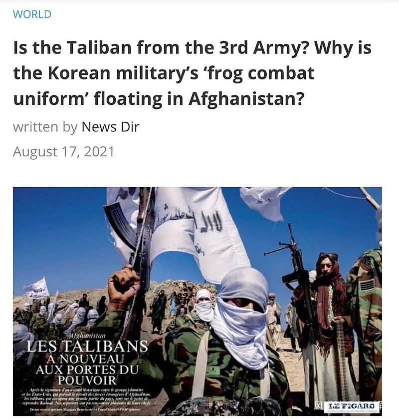 不過,現在韓國更難堪:塔利班攻入首都喀布爾時,不少塔利班武裝人員穿的竟然是韓國軍服。