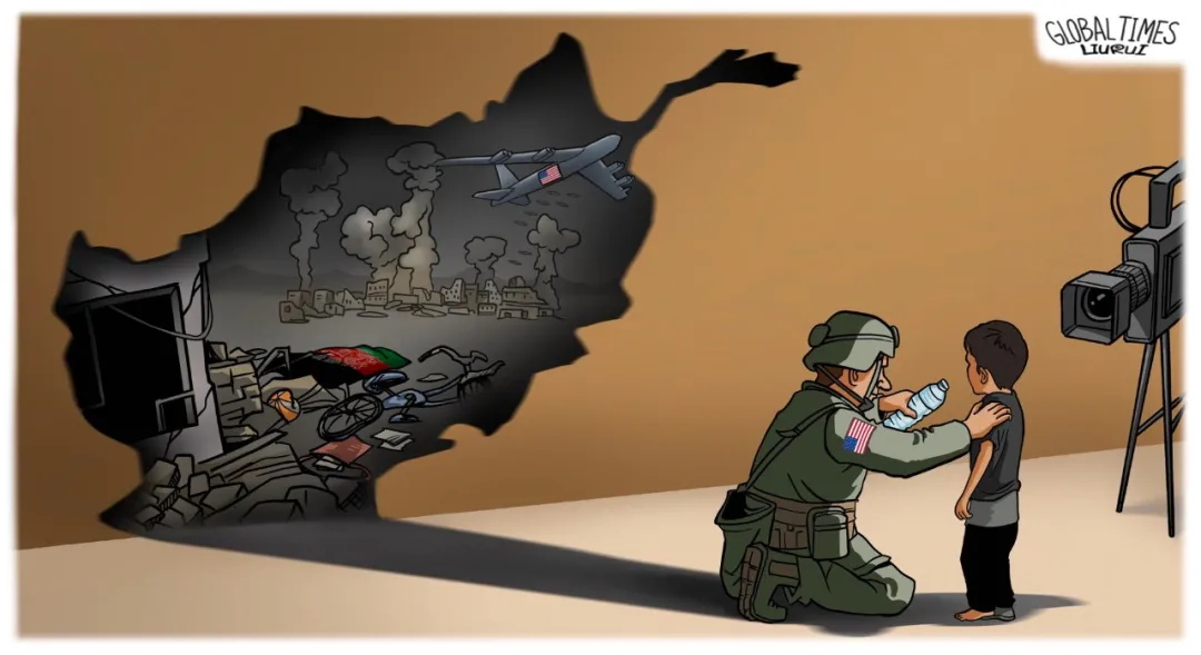 阿富汗的20年撕下美國的假面,露出真實醜態:它自吹自擂的“人權燈塔”下,埋着美軍反人類罪行留下的累累白骨;它口中的“和平”給無辜平民帶去無盡的災難;它兜售的所謂“民主”不過是軍事幹涉和強權政治的幌子。