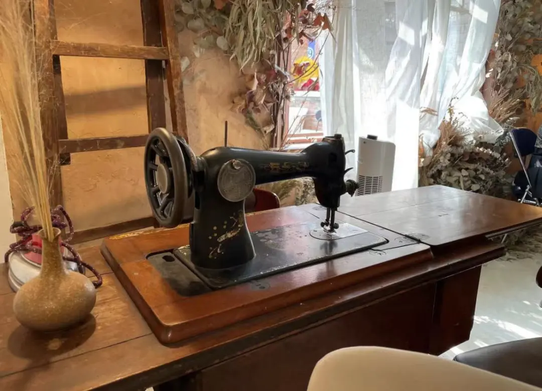來喜兒咖啡處處可見從市場淘來的老物件,竹編吊燈、舊鋼琴寫滿了歲月的味道;縫紉機、石獅擺件刻滿了風霜的痕跡。