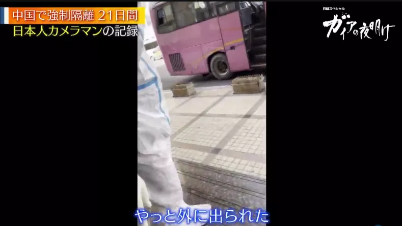 到了辦退房的日子,踏出酒店門口的瞬間,中村才反應過來已經長達21天沒有出門了,行李被套上了塑料袋。坐上專門的巴士,到達機場,前往北京,與同事匯合。