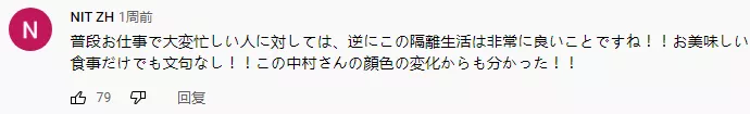 對於平時工作很忙的人,這樣的隔離生活反而很棒!光是有好吃的隔離餐這一點就沒有任何怨言!從中村隔離前後的臉色變化也能夠看出來!