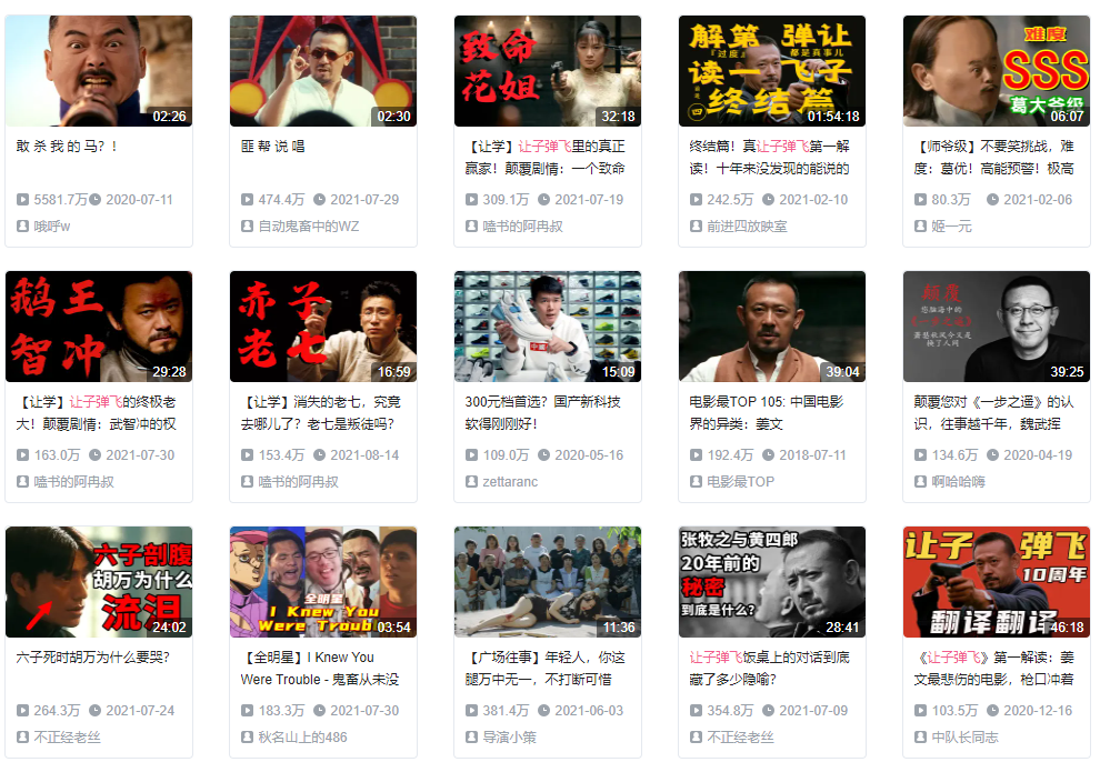 在B站用“讓子彈飛”做關鍵字進行檢索,按照點擊量排序,排名第一的視頻,就是這個。瞧瞧這堪比《讓子彈飛》正片的五千萬播放量.