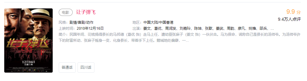 2018年3月22日,《讓子彈飛》普通話版上架Bilibili,廣受好評;兩年後,《讓子彈飛》四川話版上架Bilibili,再獲好評;