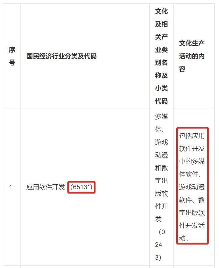 這些小類的名稱如果和《國民經濟行業分類》裏的小類完全一致,則名稱保持一致;如果有些小類僅部分活動屬於文化及相關產業,則名稱就不一致,並會在代碼後加“*”做標識,還要對屬於文化生產活動的內容進行説明,如下圖所示。