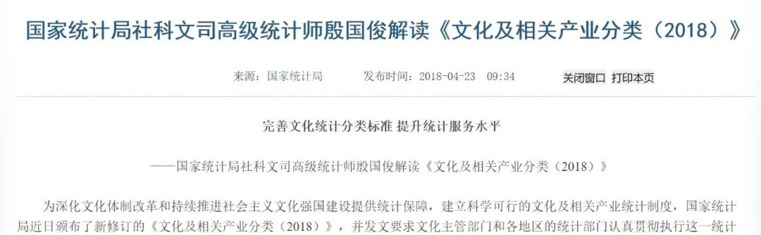 △國家統計局官網上的這個解讀,連同《文化及相關產業分類(2018)》,值得文產人細讀