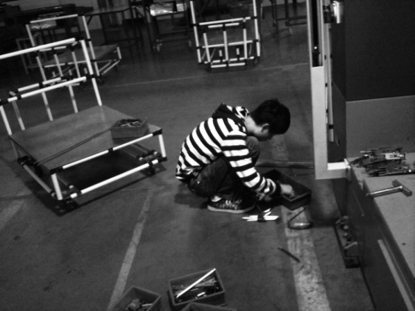 離開工廠車間前最後一次和同事檢修設備