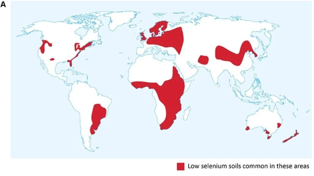 全球低硒地區。圖片來源:(DOI)10.3389/fpls.2018.00730