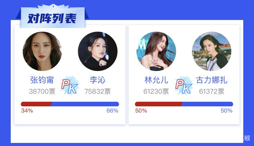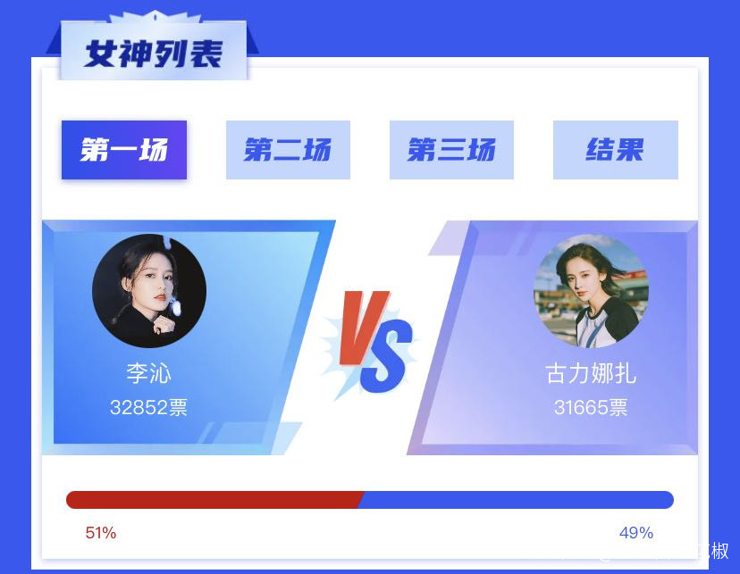 第二場兩人幾乎持平,古力娜扎得票略微領先