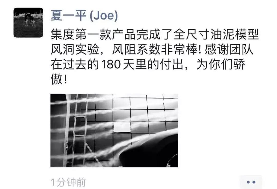 集度造車進展:成立182天整車設計已完成,CEO夏一平曬出風洞試驗圖