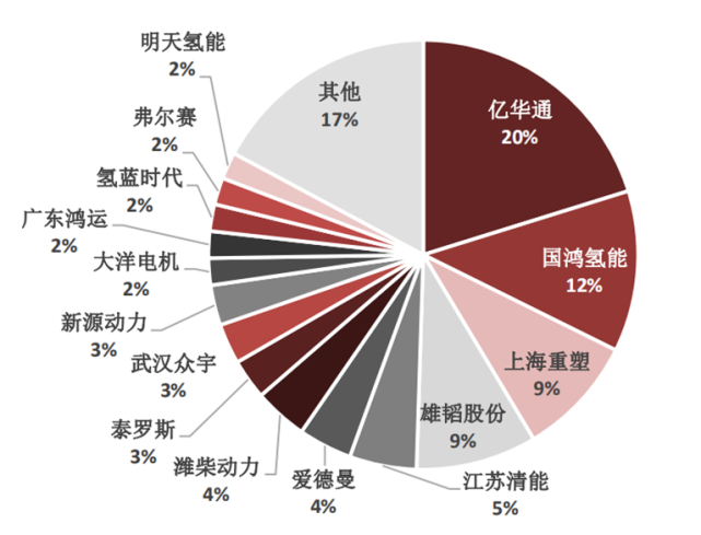 傳統石化能源企業中,中石油、中石化、寶豐能源均開始了制氫環節的佈局;光伏龍頭隆基拓寬賽道,打造“光伏+儲能+氫能”模式;汽車整車龍頭長城、上汽、宇通對氫能源車的滲透;億華通、濰柴動力、大洋電機、威孚高科進軍動力系統;中材科技、厚普股份、雄韜股份、雪人股份深耕加氫儲氫的。除此之外,還有類似美錦能源這樣對產業鏈的全面佈局。