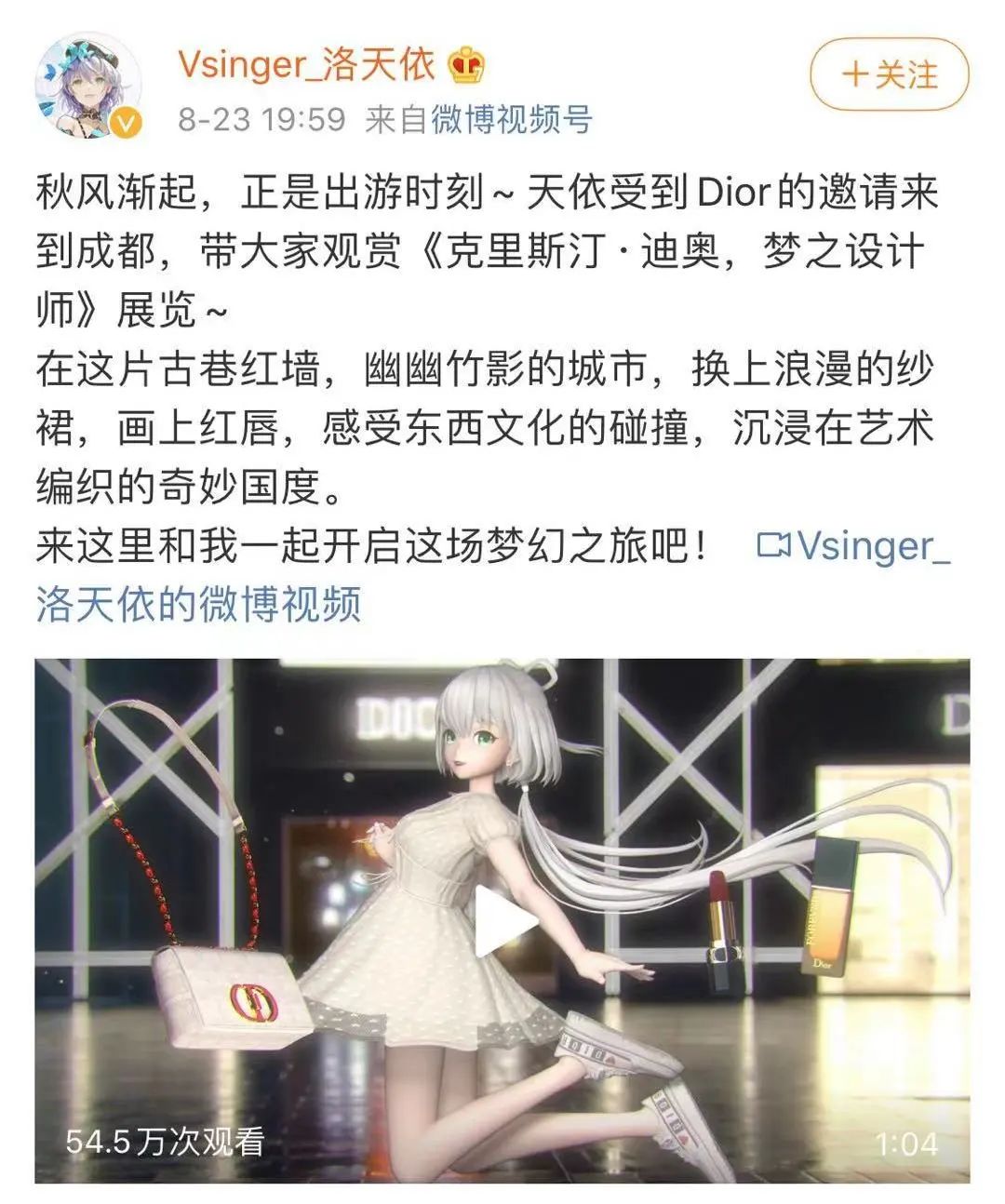 今年,作為虛擬偶像中的頂流,洛天依先是上了春晚,和燕子姐姐、王源一起,演唱了《聽我説》,登上了國內的最大舞台。隨着這次進入主流視野,其合作的品牌愈發進入商業頂流。截至目前,洛天依已經和Dior、法國嬌韻詩、奧迪等品牌進行了聯動。