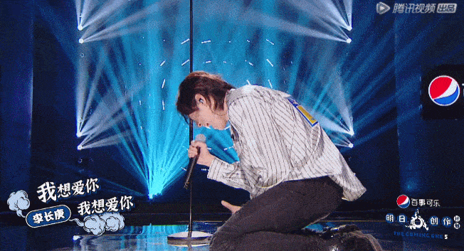 相反,他表演到情緒失控跪地時,都在聲嘶力竭唱着同一句對媽媽的"我想愛你"。