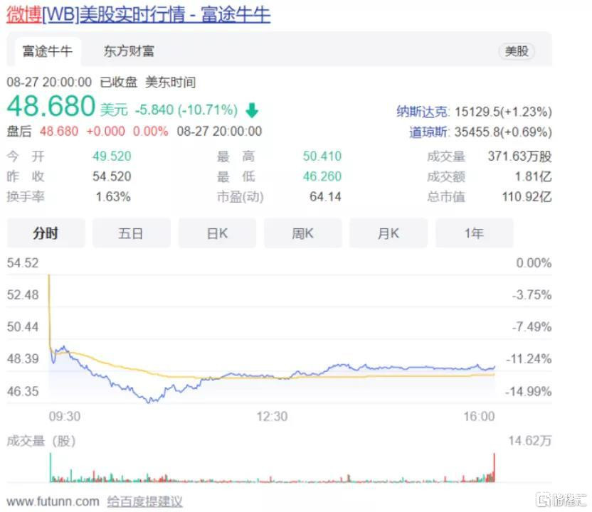 美東時間,8月27日,至美股收盤,微博跌幅超過10%,其中當天最大跌幅超過15%,使得Q2季度財報淨營收與月活躍用户增長,所帶來的股價漲幅,一夜回到了“解放前”。