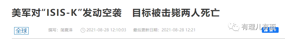 隨後,美國使用無人機發動精準打擊,宣稱擊斃了2名ISIS-K人員,但卻同時致9名平民死亡,受到各方抨擊。