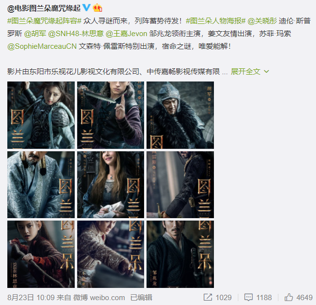 “好年份”的又一個遺產最近浮出水面。在一個成績遠不算理想的暑期檔後,鄭曉龍導演、關曉彤主演的國產大片《圖蘭朵:魔咒緣起》橫空出世,發佈了預告片和一組人物海報。